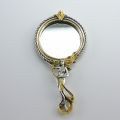Компактное зеркальце в серебряной оправе и ручкой выполненной в виде обнаженной девушки с длинными золотыми волосами. Серебро 925 пробы, позолота. Вес серебра 55 гр. Длина зеркала 110 мм. None