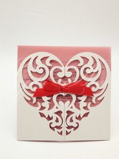 Пригласительные на свадьбу Gilliann Sindy INV038 Каждая деталь романтической свадьбы красноречиво рассказывает гостям об искренних чувствах, которые молодожены испытывают друг к другу. Пригласить гостей на свадьбу в романтическом стиле также нужно по-особенному. Вас, несомненно, очарует свадебное приглашение Gilliann Sindy, самое романтичное и невероятно нежное. Приглашение изготовлено из белого дизайнерского картона в виде конвертика с вложением. Обложка выполнена в виде сердца и украшена богатым вырубным рисунком. Многочисленные узоры наделяют сердечко особой хрупкостью и изысканность. Дополняет композицию аккуратный красный бантик из тонкой атласной ленты. Если развязать бантик, можно раскрыть створки сердца. Страничка с текстом пригласительного письма размещена на ярко-красной подложке, которая придает кальке с текстом легкий красный оттенок. Материал: дизайнерский картон, атласная лента. Размер: 14 х 14 см Мин. заказ 500 руб.