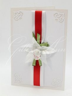 Свадебные пригласительные Gilliann Orchidea in Red INV033 Торжественное и элегантное пригласительное на свадьбу. Изготовлено из светлого дизайнерского картона. Обложку украшает изысканная цветочная композиция: белая основа с узорными уголками обтянута двумя атласными лентами белого и красного цвета, в центре композиции - роскошная орхидея с жемчужиной в сердцевине. Страничка с текстом пригласительного письма украшена половинкой жемчужины. С помощью свадебного приглашения можно не только красиво преподнести гостю информацию о дате и месте проведения регистрации, но и подчеркнуть важность его присутствия на свадьбе. Особенное приглашение, гармонирующее со стилистикой и цветовой гаммой свадьбы, поможет настроить гостей на нужный лад. Материал: дизайнерский картон, атласная лента, искусственный цветок, жемчужины. Размеры: любые. Мин. заказ 500 руб.