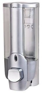 Серебристый дозатор жидкого мыла объёмом 380 мл Размеры: 80x190x58 (78 с кнопкой) мм Материал: пластик Цвет: серебристый матовый / прозрачное стекло Объем: 0,38 л Тип: Механический None