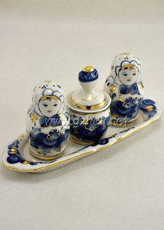 - Набор для специй "Аленушка" в золоте. Гжельский фарфор. арт. 0180 в каталоге Набор для специй в Москве;