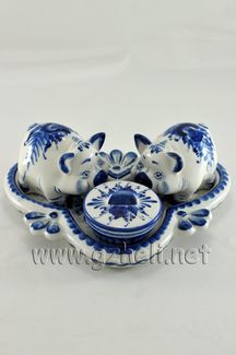 - Набор для специй "Поросята". Гжельский фарфор. арт. 2601 в каталоге Набор для специй в Москве;