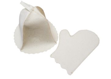 Комплект из шерсти для бани и сауны из 2 предметов: шапка и варежка. Шапка нужна для того, чтобы не перегреть голову. Руковица для бани защитит руку от пара и прутьев веника. None