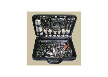 Набор "Премьер" (в кейсе из пластика) 1. Кейс пластиковый с внутренней отделкой из натур. кожи чёрного цвета и росписью ручной работы 1шт. 2. Термос из нержавеющей стали 0,35 л 1шт. 3. Фляжка из нержавеющей стали 0,5 л 1шт. 4. Вилки из нержавеющей стали 6шт. 5. Ложки из нержавеющей стали 6шт. 6. Рюмки из металлического сплава посеребренные 6шт. 7. Стаканчики из нержавеющей стали - 6шт. 8. Мангал складной из нержавеющей стали 1шт. 9. None