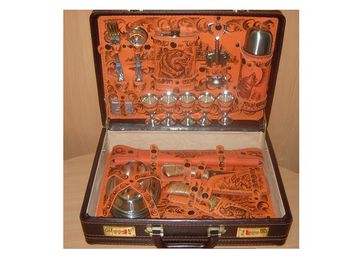 Набор для пикника "В лесу плюс" кожаНабор туристический на 5 персон с внутренней отделкой из натуральнойкожи. Кейс из искусственной кожи. Выжигание по коже. Ручная работа. Производство Россия - Мастерская "Артугол" Размер: 440мм/330мм/120мм Комплектация: None