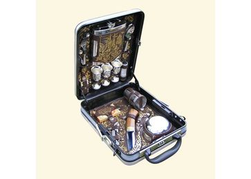 Набор подарочный «Коньячный» (Набор для пикника) Комплектация:1. Кейс вертикальной компоновки с внутренней отделкой из натуральной кожи 1шт.2. Фляжка из нержавеющей стали 0,5л 1шт.3. Воронка из нержавеющей стали для заполнения фляжки &nbs None