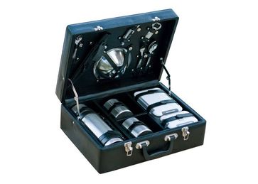 Набор посуды для поездок «Авто-Комфорт»Комплектация:1. Кейс из искусственной кожи (размер 43.5х32.5х16 см) 1шт.2. Термос из нержавеющей стали 1л 1шт.3. Термокружка с крышкой 2шт.4. Контейнер None