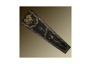 Шампура "Подарочные-2 VIP" 1. Черный колчан для шампуров из натуральной кожи с росписью ручной работы 1шт. 2. Шампур длиной 60 см с ручкой из ореха 6 шт. 3. Нож охотничий из дамасской стали или высококачественной нержавеющей стали 95х18 с наборной рукоятью из ценных пород дерева (макасар, эбеновое дерево, блудвуд, ореховый кап и т.п.) - None