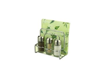 Солонка, перечница, емкость для зубочисток, металлическая подставка с салфетницей None