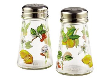 В наборе: солонка, перечница, стекло, нержавеющая сталь, рисунок - фрукты None