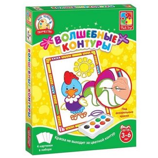 <p>Пусть ваш малыш создаст свой первый шедевр живописи! С этим набором из серии &laquo;Волшебный контур&raquo; даже начинающие творцы смогут создать яркие и аккуратные рисунки. В наборе вы найдете четыре картинки с забавными персонажами, которые можно раскрасить акварельными красками.</p> <p>Выпуклые цветные контуры не позволят краске выходить за границы и смешиваться с другими цветами.</p> <p>Ребенок научится обращаться с кисточками и красками, не боясь испортить свою работу.</p> <p>Такие наборы прекрасно подходят для занятий с детьми дома, в детских сада и кружках рисования.</p> <p>Интерес к творчеству прививается в комфортной игровой форме. В комплект также входит рамка-подставка для картин.</p> <p>Данные товары прекрасно подходят для подарков детям, а также выгодно выделяются на полках магазинов. В комплекте: 4 картинки, рамка-подставка</p> <p>Возраст: 3+</p> <p>Материал: пластик, бумага</p> <p>Упаковка: цветная картонная коробка</p> <p>Размер упаковки: 21,5х27 см</p> <p>Производитель: Украина</p> <p>&nbsp;</p> Наличные, безнал., карты, эл. деньги, юр. лица Возможен самовывоз. Есть доставка.