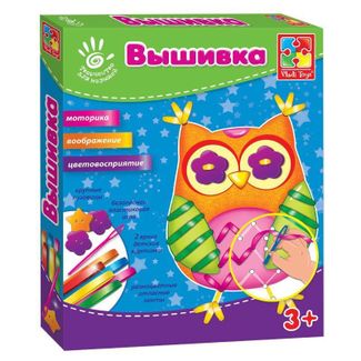 <p>Вышивка лентами и пуговицами для малышей.</p> <p>В коробке: 2 картинки с отверстиями; 1 пластиковая игла с большим &laquo;ушком&raquo;; разноцветные ленты; яркие пуговицы; книжечка-инструкция; рамка-подставка.<br /><br />Бренд: Vladi Toys<br />Вес: 0.09 кг.<br />Материал: Картон, текстиль, пластик<br />Размер: 0,01х0,16х0,23</p> Наличные, безнал., карты, эл. деньги, юр. лица Возможен самовывоз. Есть доставка.