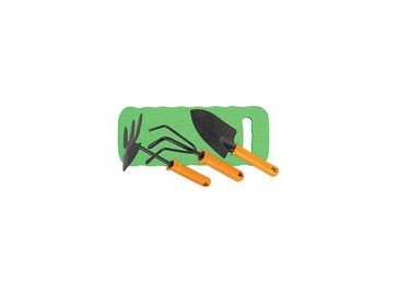 Набор садового инструмента из 4 предметов. Предназначен для работ по уходу за растениями, цветами, небольшим кустарником. Инструмент изготовлен из углеродистой стали, имеет защит- ное покрытие, предохраняющее от коррозии. В набор входит: 1. Рыхлитель 3-зубый, ширина рабочей части 100 мм, общая длина 225 мм. Используется для рыхления, аэрации почвы на небольших грядках и клумбах. 2. Мотыжка 3-зубая комбинированная, ширина рабочей ча- сти 72 мм, общая длина 240 мм. Используется для рыхления, аэрации почвы и прополки на небольших грядках и клумбах. 3. Совок широкий, ширина рабочей части 90 мм, длина 130 мм, общая длина 260 мм. Используется для высадки и пересадки рассады, растений или цветов на небольших грядках или клумбах. 4. Коврик из вспененного полиуретана, 400 х 160 х 20 мм. Используется как подколенник или сиденье для предохранения от холода и сырости. Минимальная сумма заказа без доставки 500 руб.