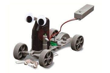 <p>Набор для создания настоящего робота, который умеет искать клады.</p> <p>Соберите из деталей движущегося робота, который управляется с помощью пульта, и отправляйтесь на поиски сокровищ!</p> <p>При приближении к металлическому предмету робот издает звуковой сигнал.</p> <p>Что входит в&nbsp;комплект?</p> <p>1&nbsp;деталь-металлоискатель</p> <p>1&nbsp;шасси (с&nbsp;предустановленными осью и&nbsp;шестернями)</p> <p>1&nbsp;ось</p> <p>4&nbsp;колеса</p> <p>1&nbsp;двигатель с&nbsp;проводами и&nbsp;червячным механизмом</p> <p>1&nbsp;корпус для двигателя</p> <p>1&nbsp;короткая ось</p> <p>1&nbsp;шестерня</p> <p>1&nbsp;рычаг-переключатель</p> <p>1&nbsp;ранель-основание для глаз</p> <p>2&nbsp;глаза-наклейки</p> <p>1&nbsp;корпус пульта управления с&nbsp;кнопками и&nbsp;проводами</p> <p>1&nbsp;крышка для батарейного отсека</p> <p>1&nbsp;соединительный кабель (100&nbsp;см.)</p> <p>1&nbsp;винт с&nbsp;шайбой</p> <p>4&nbsp;заглушки</p> <p>винты 3&nbsp;шт.</p> <p>подробная инструкция на&nbsp;русском языке</p> <h3>Также потребуются, но&nbsp;в&nbsp;комплект не&nbsp;входят</h3> <p>1&nbsp;батарейка АА&nbsp;1,5 В</p> <p>маленькая крестовая отвёртка</p> <p>&nbsp;</p> <h3>Как это работает?</h3> <p>Внутри металлоискателя есть моток проволоки. По&nbsp;ней проходит переменный ток, который часто меняет направление. Проволока получает электромагнитные свойства, и&nbsp;вокруг неё создаётся магнитное поле. Если в&nbsp;магнитное поле попадает металлический предмет, поле вызывает в&nbsp;нём течение тока, в&nbsp;результате че