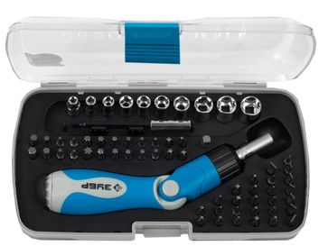 Набор ЗУБР Отвертка "ЭКСПЕРТ" реверсивно-рычажная с насадками,удл. с магнит.фикс.,Hex1 4"-SQ1 4",в пласт. боксе,64пред.