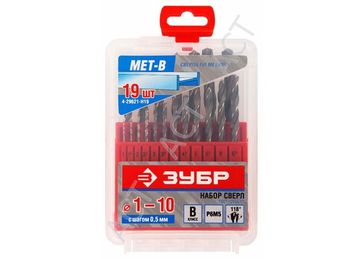 - Набор ЗУБР Свёрла "МЕТ-В" по металлу, цилиндрический хвостовик, быстрорежущая сталь Р6М5, 1-10мм, 19шт в каталоге Наборы инструментов в Москве;