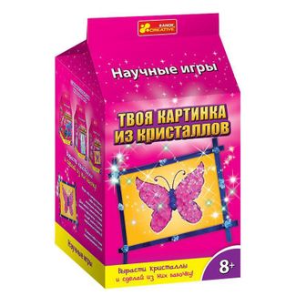 <p>Каждая девочка мечтает о своей уникальной коллекции украшений.</p> <p>Именно поэтому была создана серия научных игр по выращиванию восхитительных кристаллов, которыми можно украсить различные поделки или любимые вещи.</p> <p>В инструкциях наборов подробно описаны этапы выращивания кристаллов и декорирования ими необычных поделок.</p> <p>Из набора &laquo;Твоя картинка из кристаллов&raquo; можно самостоятельно сделать картинку с &laquo;хрустальной&raquo; бабочкой и вырастить настоящие игольчатые кристаллы!</p> <p>Бренд: Ранок<br />Вес: 0,2<br />Возраст: от 7 до 12 лет<br />Инд. упаковка: коробка<br />Материал: Картон, пластик, реактивы<br />Размеры ДхВхШ: 0,12х0,12х0,2<br />Страна-производитель: Украина</p> Наличные, безнал., карты, эл. деньги, юр. лица Возможен самовывоз. Есть доставка.