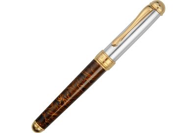 Роскошная перьевая ручка сделана из латуни, серебра и полированного панциря черепахи. Стильный дизайн и идеальное сочетание различных материалов делает эту ручку незаменимым помощником делового человека. Такая ручка в эффектной фирменной коробке будет прекрасным подарком для руководителя. Гравировка (Без чернения) на данный товар осуществляется бесплатно. Оплачивается только настройка оборудования в размере 500 рублей на весь тираж. None