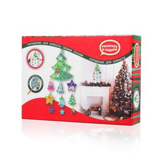 <p>Новогоднее настроение появится у каждого в семье, если вместе сделать такое милое украшение для комнаты своими руками. Пусть ваш ребенок сам выберет цвет елки (ей вовсе не обязательно быть зеленой!), а также дополнит украшение сияющими звездочками и красивыми колокольчиками.</p> <p>Наборы &laquo;Создай украшение для комнаты&raquo; &ndash; это увлекательное творчество для детей, подростков и всей семьи. Раскрашивайте заготовки удобными красками в тюбиках, как у настоящих художников, а элементы декора располагайте на свой дизайнерский вкус.</p> <p>Деревянные заготовки выполнены из экологически чистого материала, такой замечательный набор для творчества станет желанным новогодним подарком!</p> <p>Размер большой елочки - 19 см, маленькие елочки - 7,5 см, звездочки - 7,5 см.</p> <p>Габариты упаковки: 28х20х7 см</p> <p>Материал: дерево, красители</p> <p>В наборе: деревянные заготовки для раскрашивания, краски в тюбиках и кисть, шнур для сборки подвески</p> <p>Сделано в России</p> Наличные, безнал., карты, эл. деньги, юр. лица Возможен самовывоз. Есть доставка.