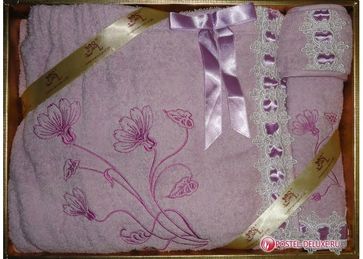 Артикул: sl5161 Производитель: SoftLine Страна производства: Китай Материал: 100% Хлопок Банный комплект 3 предмета. Отделка: Вышивка. Парео 90х150, полотенце 57х34, повязка на голову 8х64