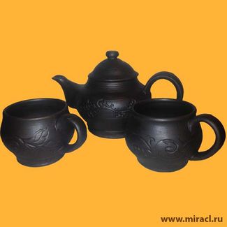 - Чайный сервиз - Чайник 0,5л и Чашки 0,25л декорированный чернолощеный по выгодной цене 1 400 р. руб.;
