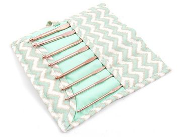 Очень удобный набор для настоящих любителей вязания крючком. Размер чехла 18 x 10 x 2 см. Компактный размер для путешествий. Крючки покрыты цветом розового золота. Диаметр: 3 мм, 3,5 мм, 4 мм, 4,5 мм, 5 мм, 5,5 мм, 6 мм, 6,5 мм