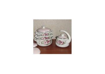 Набор посуды Илона из трех кастрюль и чайника станет отличным украшением вашей кухни! Три кастрюли: 2 л, 3 л, 4 л. Чайник со свистком 2 литра. Посуда выполнена из эмалированного металла. None Можно купить без предварительного заказа. Возможен самовывоз. Есть доставка.
