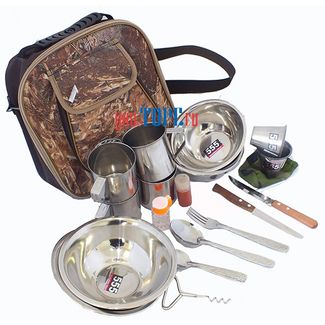 Универсальный, компактный и удобный кейс для охоты, рыбалки и пикника. Станет незаменимым даже в длительном походе. Вся посуда выполнена из нержавеющей стали, что делает ее не только прочной, но и легкой в уходе. Вам больше не нужно будет носить с собой одноразовую пластиковую посуду, которая неудобна и часто занимает слишком много места.Комплектация:• Сумка - 1 шт• Ложки столовые - 4 шт• Вилки - 4 шт• Чайные ложки - 4 шт• Ножи - 2 шт• Зубочистки - 1шт• Штопор - 1 шт• Салатник - 2 шт• Миски - 4 шт• Рюмки в чехле - 4 шт• Кружки - 4 шт• Полотенце - 1 шт• Солонка - 1 штВнимание! Цвет изделия и комплектация может отличаться от фотографии!Производство: РоссияГарантия: 1 год Доставка по всей России Есть доставка.