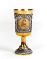 Серебряная рюмка на ножке с изображением вензеля Екатерины II и золотой монеты времен правления Екатерины Великой - 5 рублей 1777 года. None