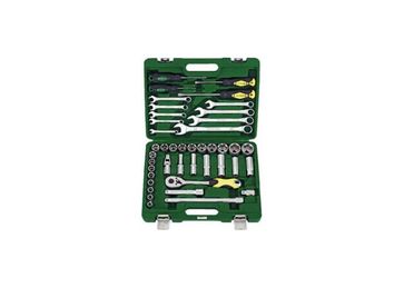 18-1/2" Головки 12-гранные: 10, 11, 12, 13, 14, 15, 16, 17, 18, 19, 20, 21, 22, 23, 24, 27, 30, 32 мм 4-1/2" Головки длинные: 10, 13, 17, 19 мм 2-1/2" Свечные головки: 16, 21 мм 1-1/2" Трещотка 45 2-1/2" Удлинители: 125, 250 мм 1-1/2" Скользящий переходник 1-1/2" Карданный шарнир 9- Ключи комбинированные: 8, 10, 11, 12, 13, 14, 17, 19, 22 мм 4-2 Отвертки: Шлицевые: 6х100, 8х75 Крестовые: 1х80, 2х100 None