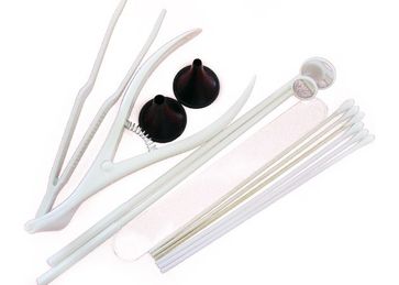 Набор оториноларингологический, стерильный (воронка ушная, зеркало носовое, гортанное, пинцет, шпатель, палочка-тампон, салфетка)