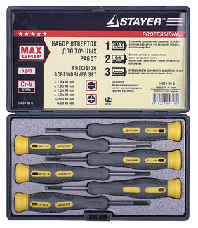 - Набор STAYER "PROFESSIONAL" "MAX-GRIP": Отвертки для точн работ, Cr-V, двухкомп рукоятка, магнит наконеч, 6 предметов по выгодной цене 489 р. руб.;