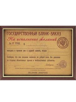 - Бланк заказа в рамке "На исполнение желаний"(SL-628936) STA499 в каталоге Награды и дипломы в Москве;