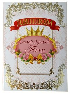 Закажите Диплом самой лучшей теще (SL-836196) K010721 у компании WedStyle.su - Первый свадебный Аутлет свадебных аксессуаров премиум-класса в Москве на портале Alloy: