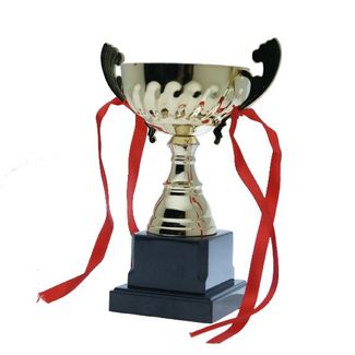 Кубок наградной с лентами Высота - 19см Чаша - металл, d-8см Основание - пластик, 8х8см Вес - 250гр None