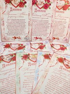 - Набор свадебных дипломов, 10 шт. K011029 в каталоге Награды и дипломы в Москве;