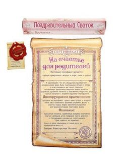 - Поздравительный свиток-сертификат на родительское счастье (121910) K010152 в каталоге Награды и дипломы в Москве;