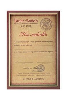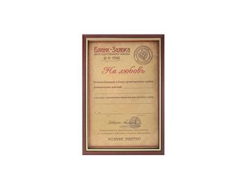 - Свадебный бланк - заявка в рамке "На любовь" (Sl-628937)STA615 в каталоге Награды и дипломы в Москве;