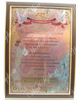 - Свадебный диплом в рамке "Великолепная невеста" (SL-479716)STA289 в каталоге Награды и дипломы в Москве;