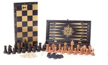 Отличный выбор для настоящего гроссмейстера и любителя настольных игр. Игровой набор роскошного, но в то же время элегантного дизайна, который содержит гроссмейстерские буковые шахматные фигуры и деревянные фишки для игры в нарды и шашки. Шахматное поле имеет черные и золотистые клетки, внутреннее поле для игры в нарды оформлено в том же стиле. Деревянные фигурки, выполненные с высоким мастерством, лаконичной формы, имеют матовое покрытие. Они не скользят по доске, их приятно держать в руках. Размеры доски отвечают профессиональным шахматным требованиям, не более 50 см. Фигуры и фишки удобно размещаются внутри коробки, поэтому у вас не будет проблем с сохранностью элементов.