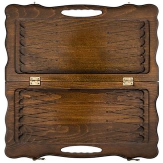 Снаружи на одной из сторон разлиновано поле для игры в шашки, которыми можно отвлечься от напряженных партия в нарды.