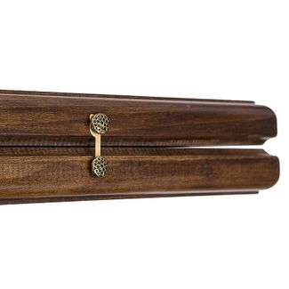 Для производства данной доски берется цельный буковый массив, что обеспечивает высокий показатель прочности. Она точно выдержит ожесточенные партии, когда фишки быстро перемещаются по поверхности и ударяются об нее. Древесина не деформируется при перепадах температуры, а в качестве дополнительной защиты используются несколько слоев лака. Им покрываются все деревянные части, что не дает им впитывать влажность, а также придает изысканного блеска.