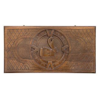Интересный экземпляр, представляющий собой доску для настольной игры, но при этом украшенный изображением перчаток для жесткого, мужского спорта. Нарды резные Боксерские перчатки являются детищем известного мастера Григория Устяна. Он работает в этой сфере на протяжении десятков лет и завоевал популярность далеко за пределами родной Армении. Здесь все выполнено на высшем уровне, включая качество материалов и внешнее оформление.
