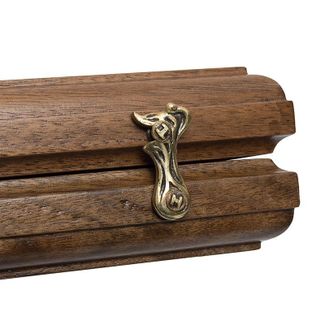 Среди всех материалов, мастер отдал предпочтение именно буку, благодаря его основным преимуществам. Он обладает амортизирующей структурой, которая спасает в случае ударов или падения, конечно в разумных пределах. О деформациях из-за влажности и случайных проливов также можно не беспокоиться, так как здесь поверхности покрыты лаком. Он придает изысканного блеска, подчеркивающего высокий класс продукта. Срок эксплуатации производителем не указывается, так как его нет – при хорошем обращении может прослужить и 10 лет, а может и больше. Петли надежные, что обеспечивается мягкостью бронзы. Из нее же сделаны и крючки.
