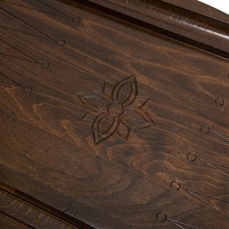 Какой бы ни была красивой доска, если она не сможет служить долгое время и будет ломаться после нескольких партий – никто не будет ее покупать. Говоря о Нарды резные Герб Чечни, сразу же нужно отметить материал изготовления. Цельный массив дуба, позволяет на долгое время забыть о новой покупке. Его высокая прочность обеспечивает достаточное сопротивление механическим воздействиям. Даже если играть ежедневно, а соперники будут попадаться очень агрессивные – никакие удары фишкой о поверхность не смогут ее повредить. Для украшения, на внешней стороне вручную вырезан герб Чечни.