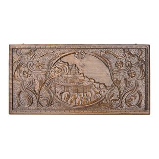Резные нарды «Монастырь в горах» - одна из самых известных работ популярного армянского мастера. Она давно завоевала заслуженную популярность и по праву считается одной из лучших моделей подарочных нард. Доска сделана из массива орехового дерева. Резьба, осуществленная вручную, защищена лаковым покрытием. Фурнитура для скрепления изготовлена из меди – металла, не подверженного ржавению. Также защищена и каждая фишка – специальная подложка предотвращает вероятность царапания доски.