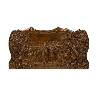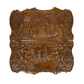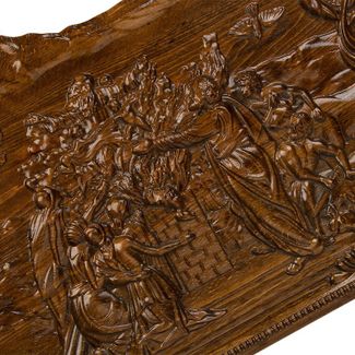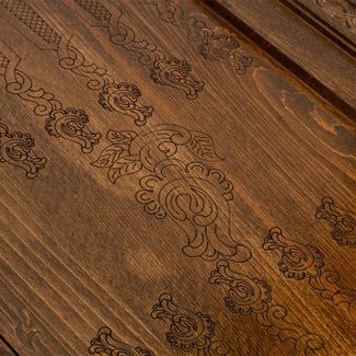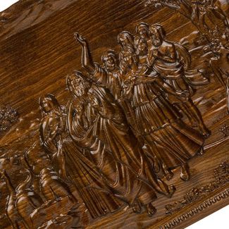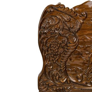 Доска украшена изысканным узором с изображением истории о Ноевом Ковчеге. Резьба выполнена вручную, смотрится очень богато и изысканно.