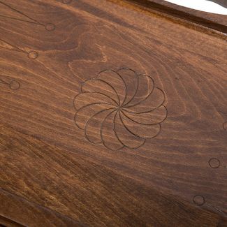 Красивая доска, которую не стыдно подарить кому-либо. Она изготавливается известным мастером, Кареном Халеяном, который славится высоким качеством изготовления, грамотным подбором материалов и продуманной комплектацией. Нарды резные Паровоз вполне можно назвать очередным шедевром, ведь здесь все покрыто узорами, каждый отдельный элемент заслуживает внимания.
