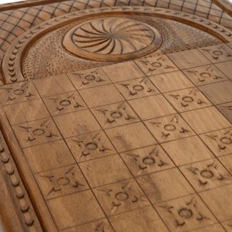 Мастер Артур Мирзоян Материал бук Исполнение резные Размер клетки (см) 3 Количество фишек 16 светлых, 16 темных Кости 2 Поле для шашек есть Размер (см) 60/60/2.5 Размер в упаковке (см) 60/30/5 Вес (кг) 4 Упаковка чехол Производитель Mirzoyan Страна производитель Армения None