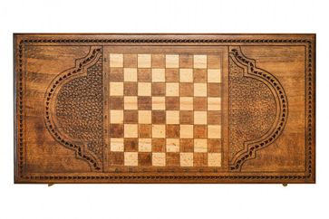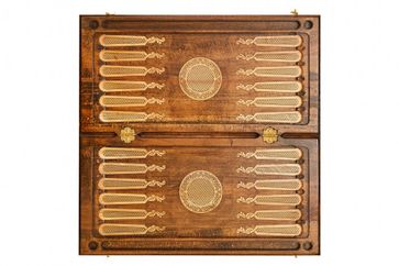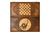 Доска украшена фактурным изображением волка, которое нанесено с помощью специального лазера, и витиеватым узором. Обратная сторона имеет поле для шашек, а внутренняя, тоже украшенная узорами – для нард. Фишки стандартной формы и размера удобно лежат в руке. На каждой из них прикреплена подложка, предотвращающая царапание игровой поверхности.
